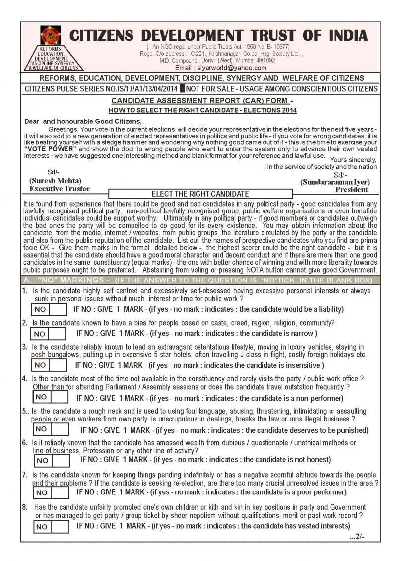 CITIZENS DEVELOPMENT TRUST OF INDIA